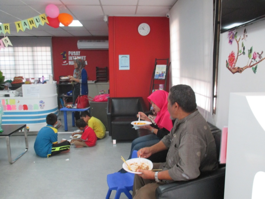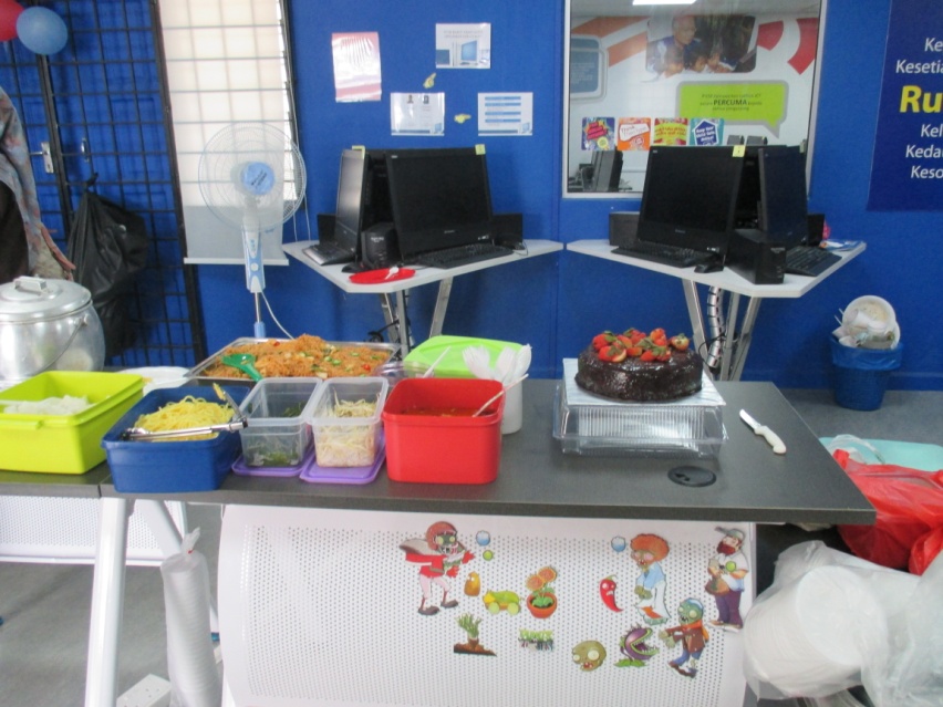 Jamuan makan disediakan kepada semua peserta yang terlibat dalam menjayakan aktiviti gotong royong di Pusat Internet 1Malaysia ini.