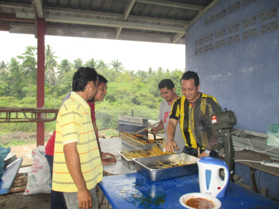 • Penduduk kampung bersama-sama memasak dan membakar sate.