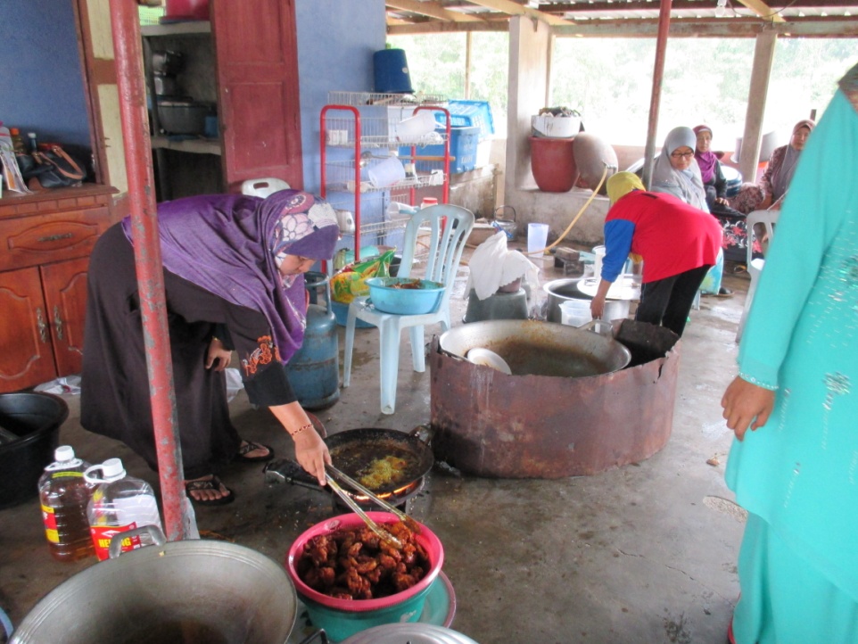 • Penduduk kampung bergotong royong menyediakan jamuan