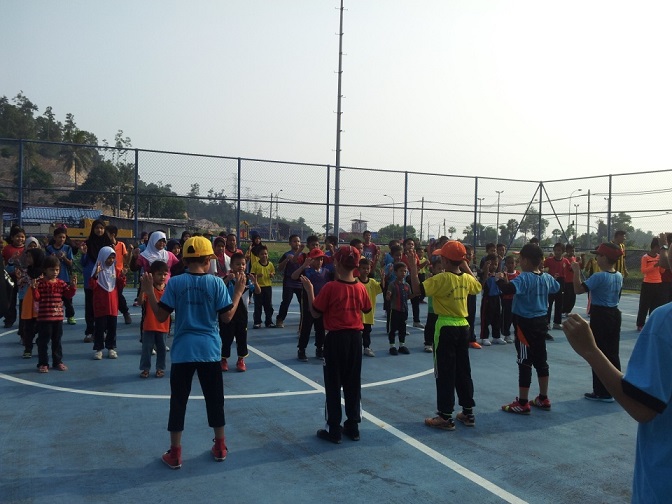 • Peserta memanaskan badan sambil menyertai senaman aerobik