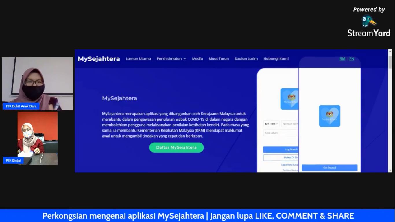 • Memberi pendedahan tentang aplikasi MySejahtera yang dikendalikan oleh pihak kerajaan dalam menangani wabak Covid-19.