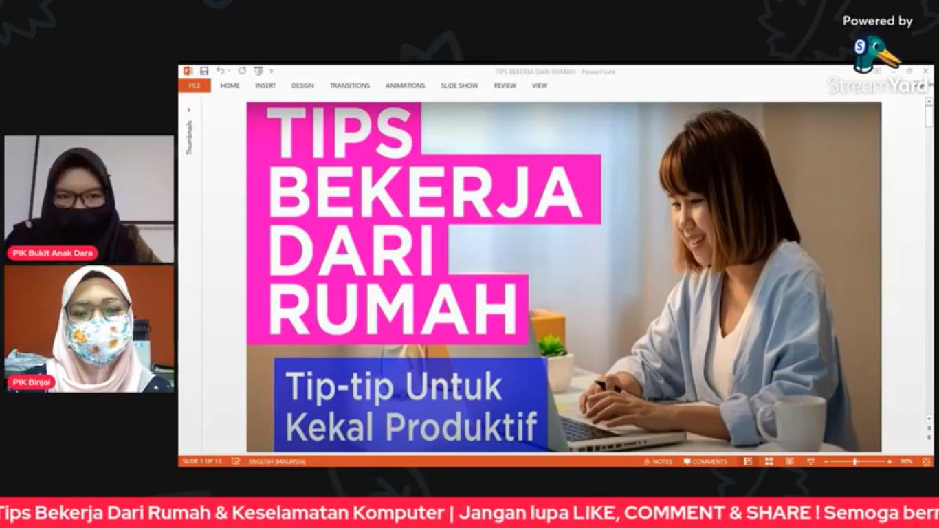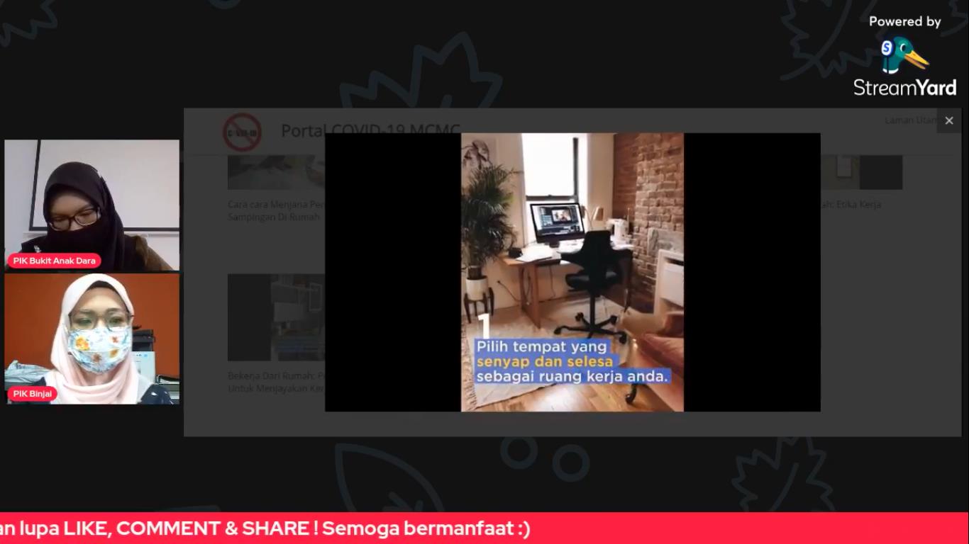 • Memberi pendedahan tentang Tips Bekerja Dari Rumah dan juga kempen yang sedang dijalankan oleh MCMC iaitu Klik Dengan Bijak yang merangkumi Keselamatan Komputer.
