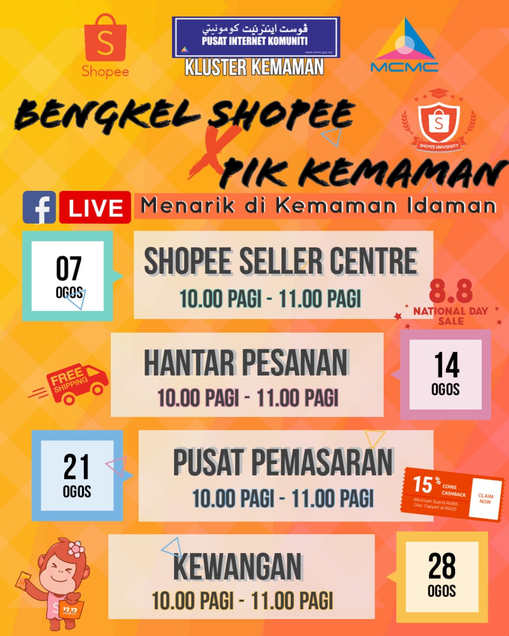 • Memberi panduan untuk mencipta akaun di Shopee sebagai penjual dan memberi tunjuk ajar bagaimana menggunakan kelebihan yang ada di platform tersebut