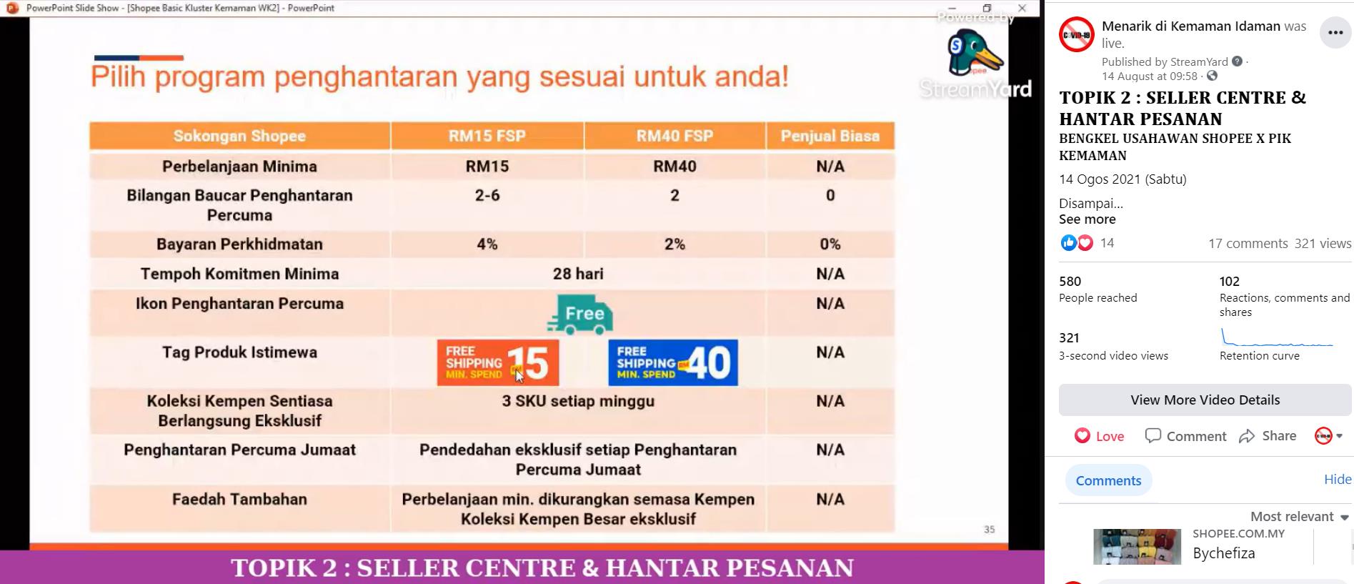 • Menggalakkan penonton menggunakan platform e-dagang Shopee untuk perniagaan secara atas talian.